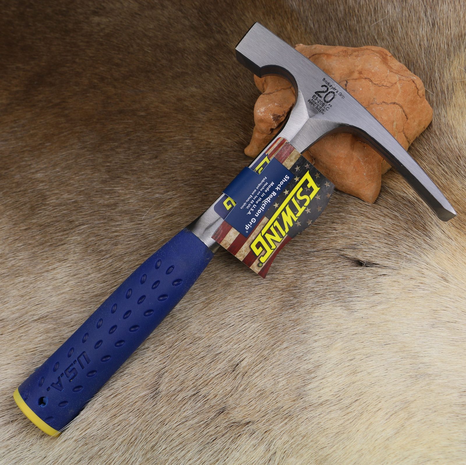 The Bricklayer's Hammers have bonded and molded Shock Reduction Grips®. Patented nylon end caps now makes these hammers the most durable on the market. The head and handles are forged in one piece and are fully polished. These tools have unsurpassed balance and are double tempered for added strength.