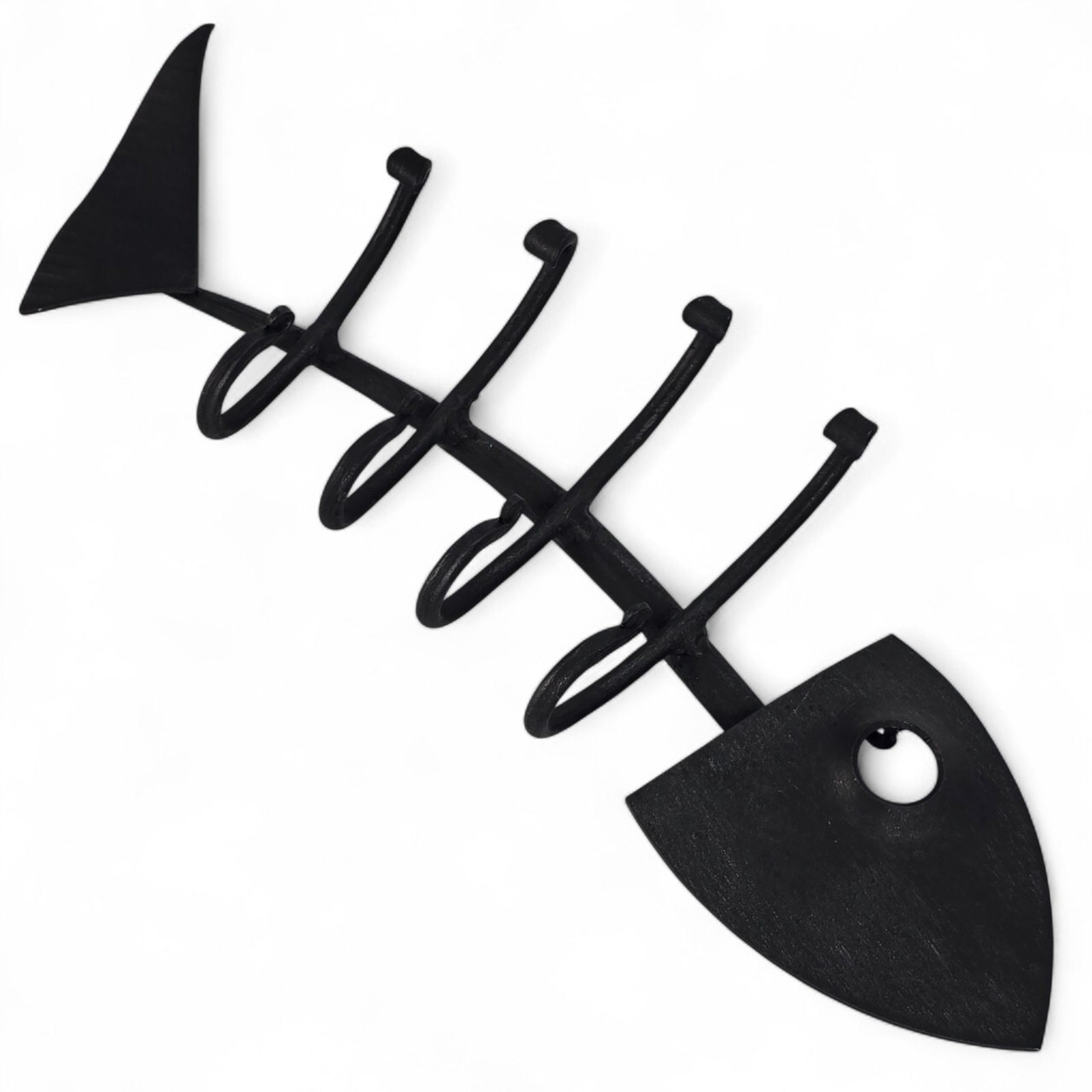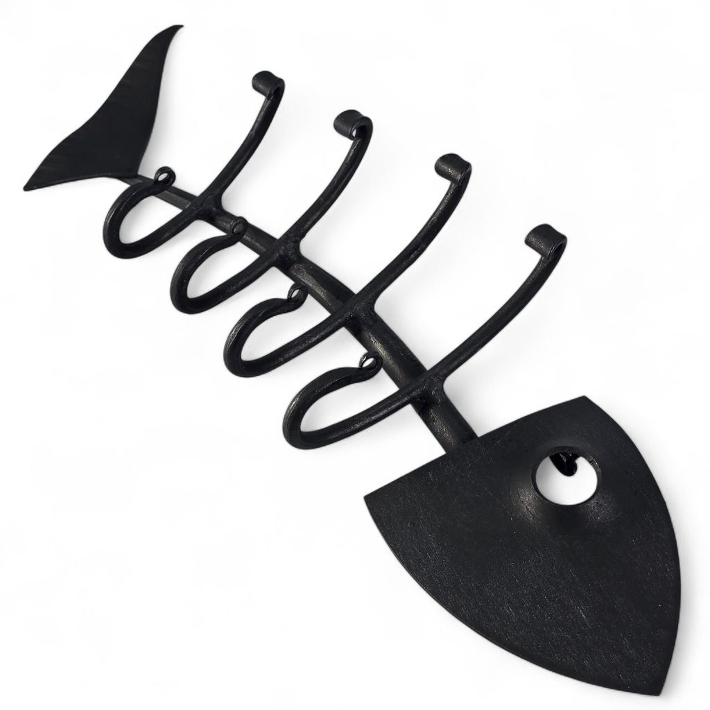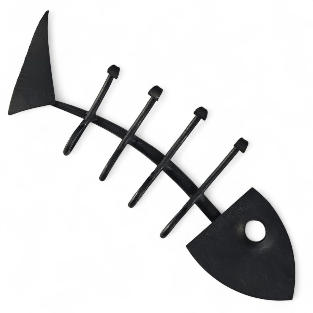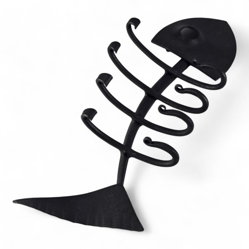 Diese verspielte fischgrätenförmige Garderobe bringt einen Hauch von Humor und ehrlicher Handwerkskunst in Ihr Zuhause. Jedes Stück entsteht unter den Händen eines tschechischen Schmieds, wo Feuer, Hammer und Erfahrung dem Metall Form geben. Die handgeschmiedete Textur und die traditionelle schwarze Schmiedelackierung garantieren Langlebigkeit und ein gealtertes Aussehen. Die robusten Haken halten zuverlässig Schlüssel, Handtücher oder kleine Gegenstände und sind gleichzeitig ein stilvolles Detail. Sie werden das Auge erfreuen, jahrelang halten und an die Kraft der traditionellen tschechischen Schmiedekunst erinnern. Er ist kompakt, robust und eine wirklich originelle Bereicherung für Ihr Zuhause.