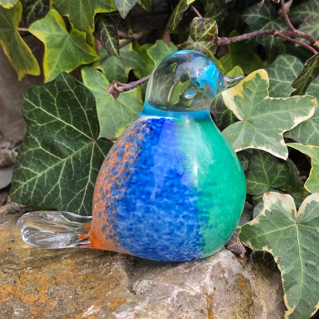Diese schöne Glasstatue eines Rotkehlchens wird in der Tschechischen Republik in traditioneller Glasbläserkunst handgefertigt. Jedes Stück ist ein Original und kann daher leicht von der Abbildung abweichen, aber die Qualität und die sorgfältige Verarbeitung bleiben immer erhalten.