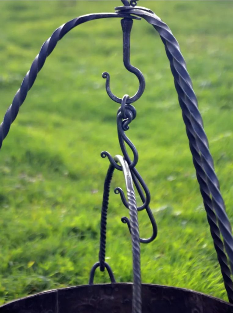 Handgeschmiedetes Set von Kesselhaken, ideal für Wikinger- und Mittelalterhöhlen.