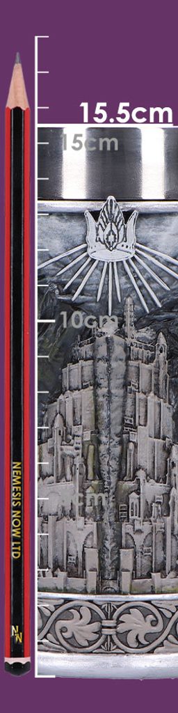 Dieser Eimer ist eines der offiziell lizenzierten Produkte aus der Welt des Herrn der Ringe und eignet sich ideal als Sammlerstück oder als stilvolle Ergänzung für eine Thementafel.