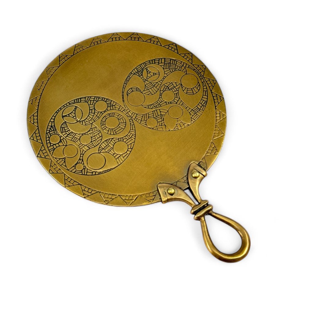 Dieser keltische Spiegel ist eine Nachbildung mehrerer keltischer Originale, die in Mitteleuropa und auf den britischen Inseln gefunden wurden. Bis ins späte Mittelalter war ein polierter Metallspiegel die einzige Möglichkeit, sein eigenes Spiegelbild zu sehen. Die Kelten waren die Erfinder dieses technischen Meisterwerks. Spiegel waren ein Luxusgut und wurden oft aufwendig verziert.