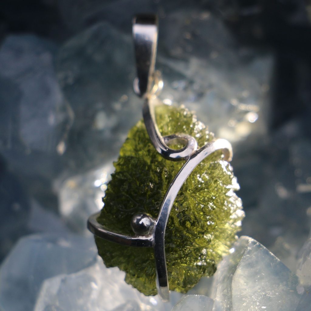 Wenn Sie auf der Suche nach einem Schmuckstück mit Stammbaum sind, das eine Geschichte in Böhmen hat, dann ist es dieses. Der Ursprung der Moldavits wird mit einem Meteoritenfall vor 15 Millionen Jahren im bayerischen Raum in Verbindung gebracht, gefolgt von einem Meteoritenschauer, von dem ein großer Teil in den südböhmischen Seengebieten landete, wo sie noch heute zu finden sind. Sie sind die schönsten Tektite der Welt und zeichnen sich durch ihre grüne Farbe und Oberfläche aus.