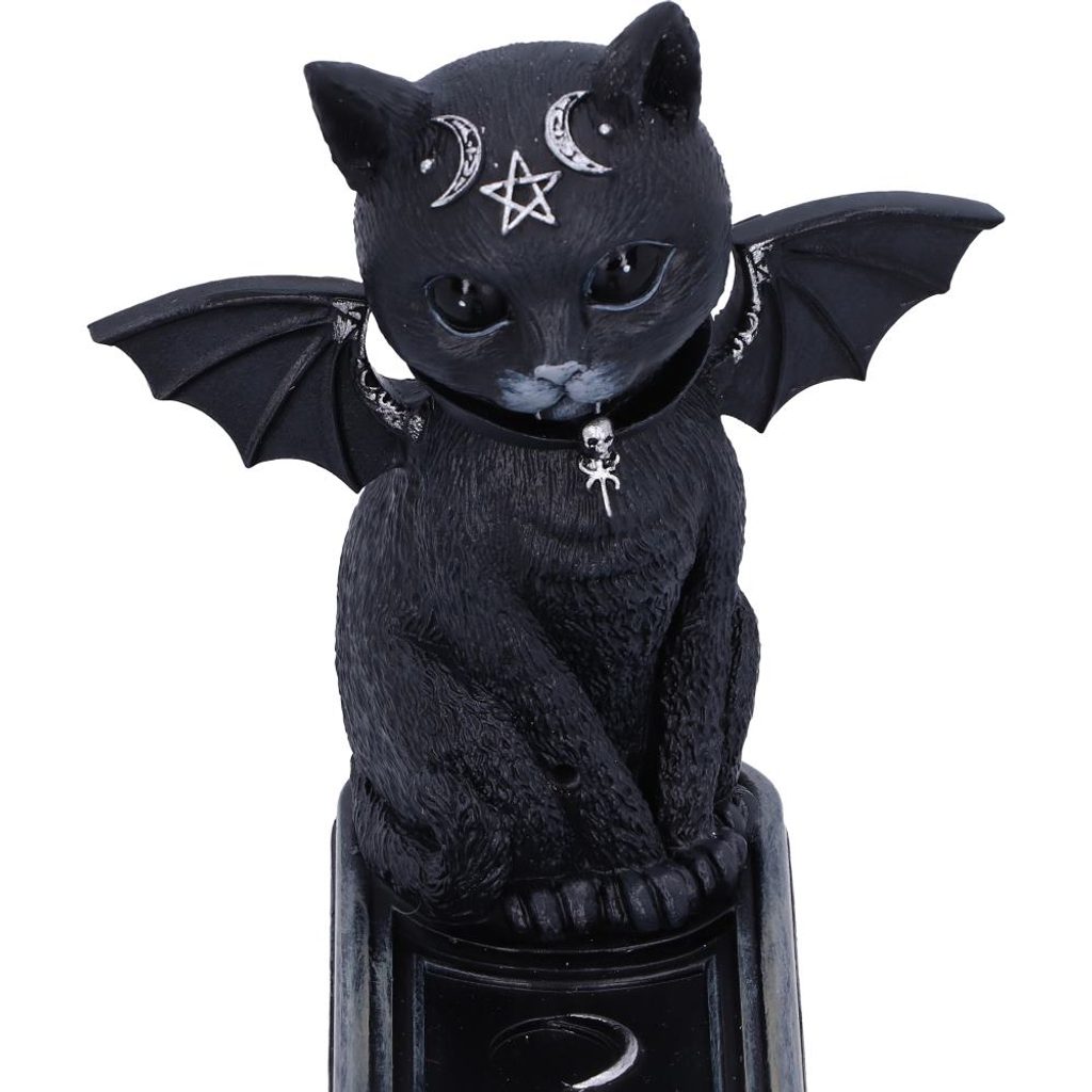 Der originelle Duftstäbchenhalter in Form der Katze Malpuss, der Niedlichkeit mit dunkler Mystik verbindet.