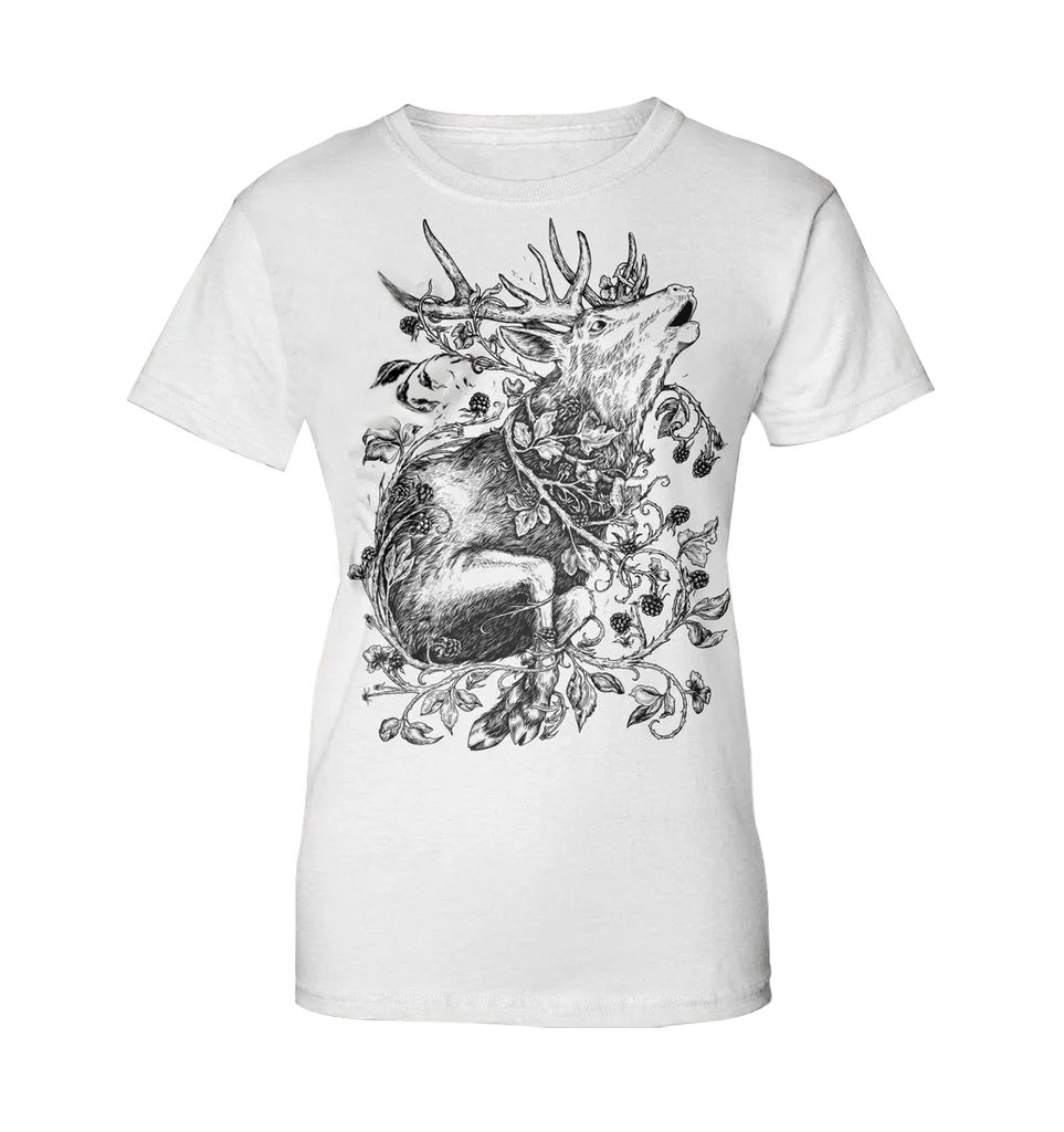 HIRSCH, weißes Damen-T-Shirt, Druiden-Kollektion.