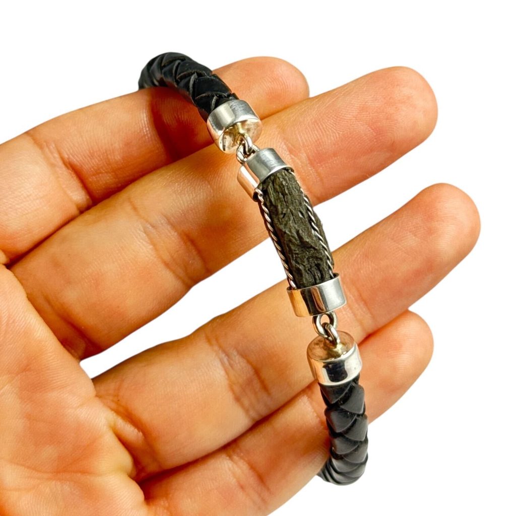 Stilvolles Silberarmband mit Moldavit.