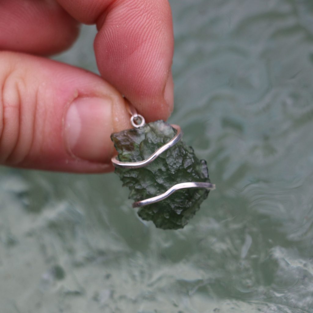 Wenn Sie auf der Suche nach einem Schmuckstück mit Stammbaum sind, das eine Geschichte in Böhmen hat, dann ist es dieses. Der Ursprung der Moldavits wird mit einem Meteoritenfall vor 15 Millionen Jahren im bayerischen Raum in Verbindung gebracht, gefolgt von einem Meteoritenschauer, von dem ein großer Teil in den südböhmischen Seengebieten landete, wo sie noch heute zu finden sind. Sie sind die schönsten Tektite der Welt und zeichnen sich durch ihre grüne Farbe und Oberfläche aus.