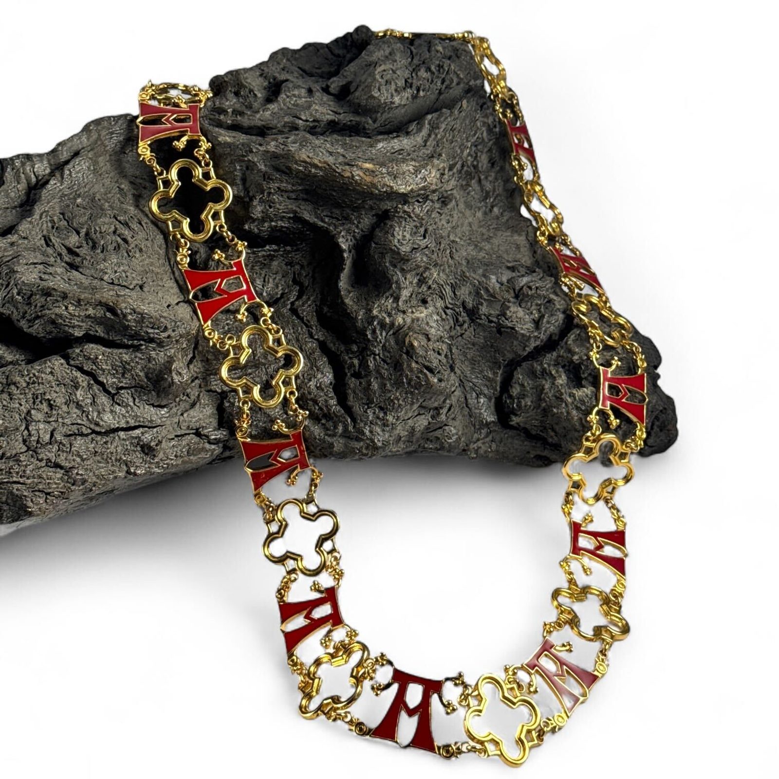 Luxus-Ritterhalsband mit emaillierten Buchstaben "A". Die Standardkette enthält 26 Glieder. Gegossenes Messing, kalt emailliert. Sie können jede beliebige Farbe der Emaille wählen - bitte geben Sie die gewünschte Farbe in der Bestellnotiz an.