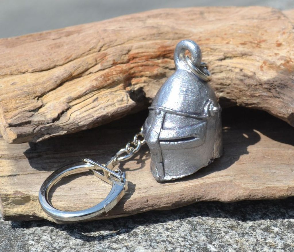 Tin medieval helmet - keychain. Height of the helmet: 3 cm.