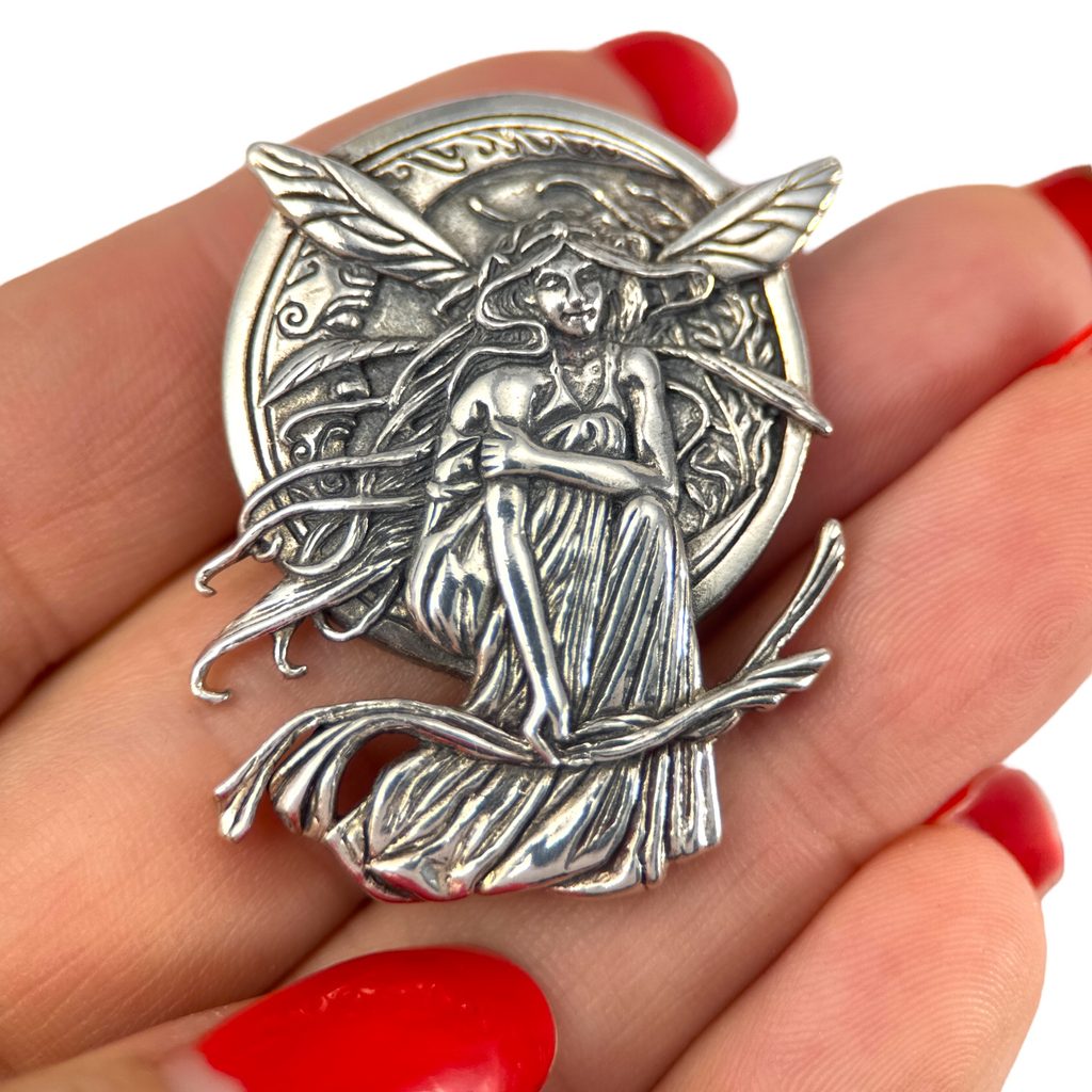 Großes und massives Silberscharnier mit einer massiven Schlaufe auf der anderen Seite.