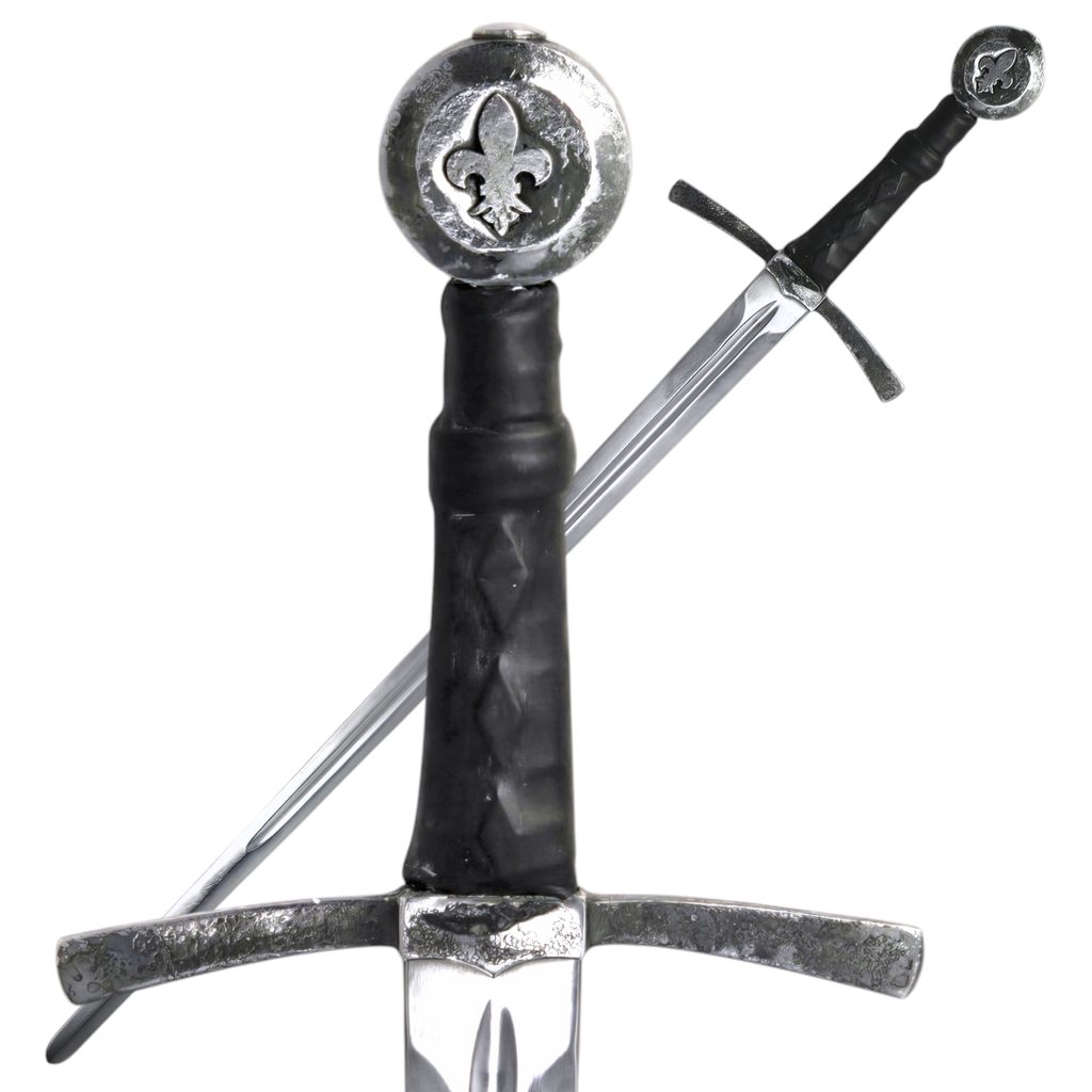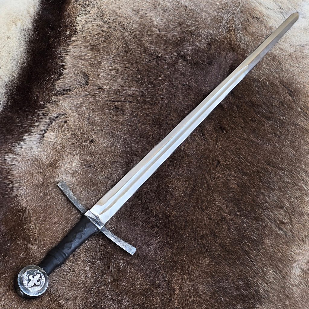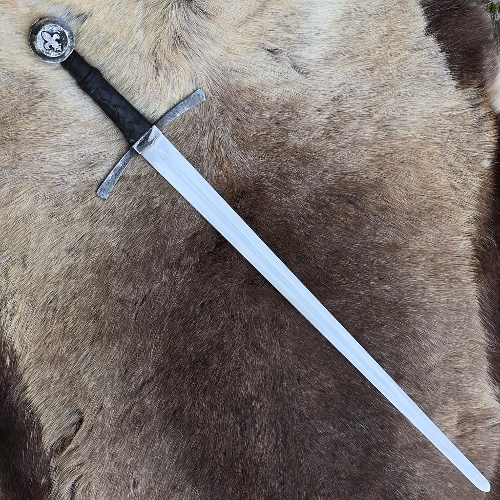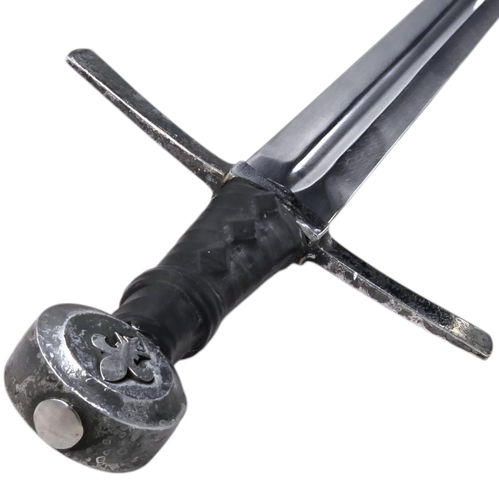 Einhändiges Schwert, das diejenigen von Ihnen, die das antike Aussehen und handgefertigt (Kopf und Wache) gefallen wird. Das Schwert ist natürlich für das historisches Fechten konzipiert, 2 Jahre Garantie und mögliche After-Sales-Service entwickelt. Sie werden vor allem sein geringes Gewicht zu schätzen wissen. Die Parierstange ist mit Messing verschweißt, damit sie sich nicht spontan löst. Hochwertige Lederumwicklung.