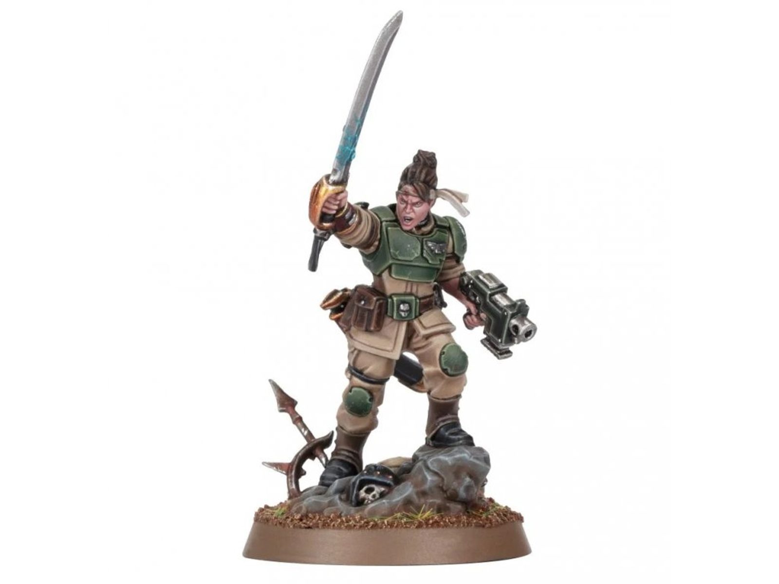 Mit diesem Plastikmodellbausatz kann der legendäre Astra Militarum Offizier von Cadia - Minka Lesk - in einer von zwei möglichen Bewaffnungsvarianten zusammengebaut werden.